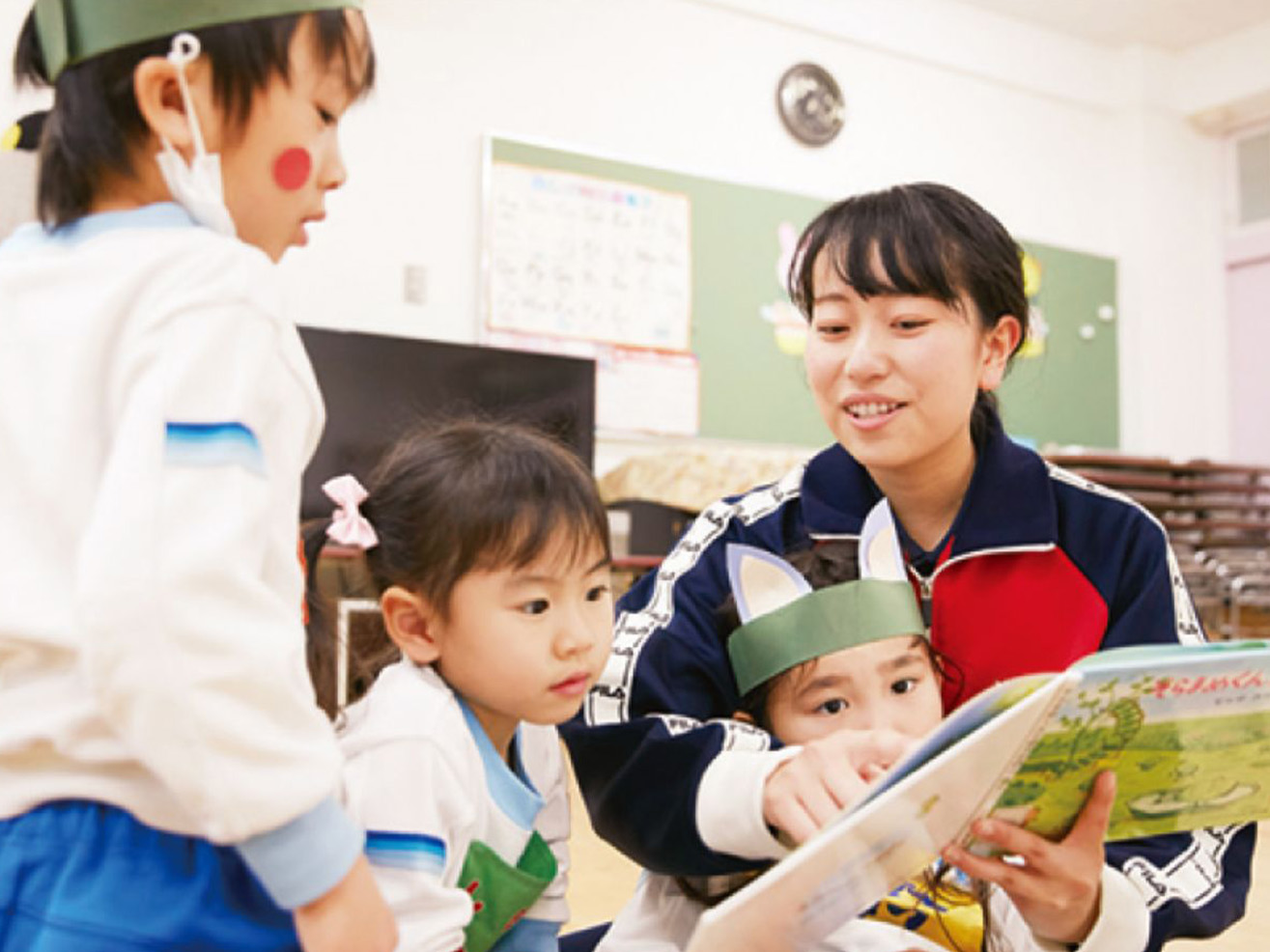 幼児教育学、教育学を基盤に、「子どもの成長とは何か、教育とは何か」を追究。子どもの育ちや学びのプロセスを広い視野で捉えられる幼稚園教諭、小学校教諭を養成します。