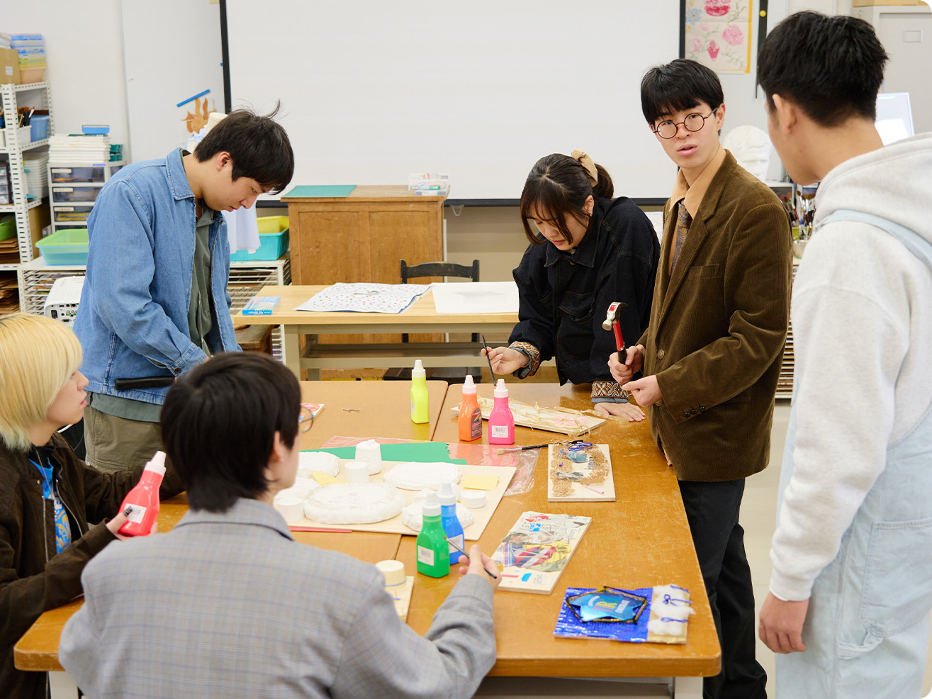 3年次から研究室に分かれゼミ活動が始まります。 卒業研究にじっくり取り組めるのは4年制大学ならではのことです。 木製のおままごとキッチンや木版画など、卒業制作をする学生も多数! 自ら表現活動を行うことで子どもにとっての表現活動とは何かを追求します。