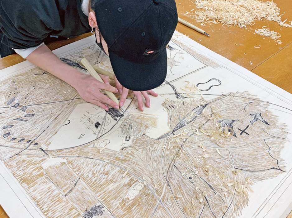 3年次から研究室に分かれゼミ活動が始まります。 卒業研究にじっくり取り組めるのは4年制大学ならではのことです。 木製のおままごとキッチンや木版画など、卒業制作をする学生も多数! 自ら表現活動を行うことで子どもにとっての表現活動とは何かを追求します。