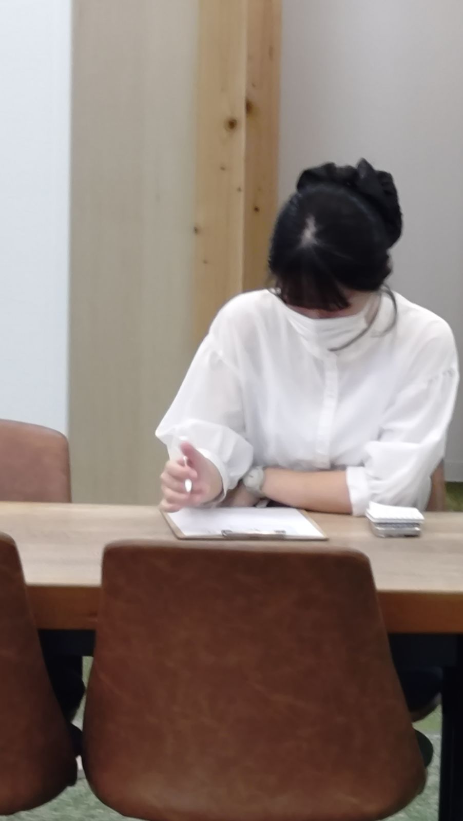 体験では、リラックスできるかどうかや、周りからの視線の感じ方を考えながら椅子の座り比べをしました。1番好きな椅子をみんなで交流する際には、理由が人それぞれで面白かったです。私は座面が広く椅子の上であぐらがかけるものを1位にしました!