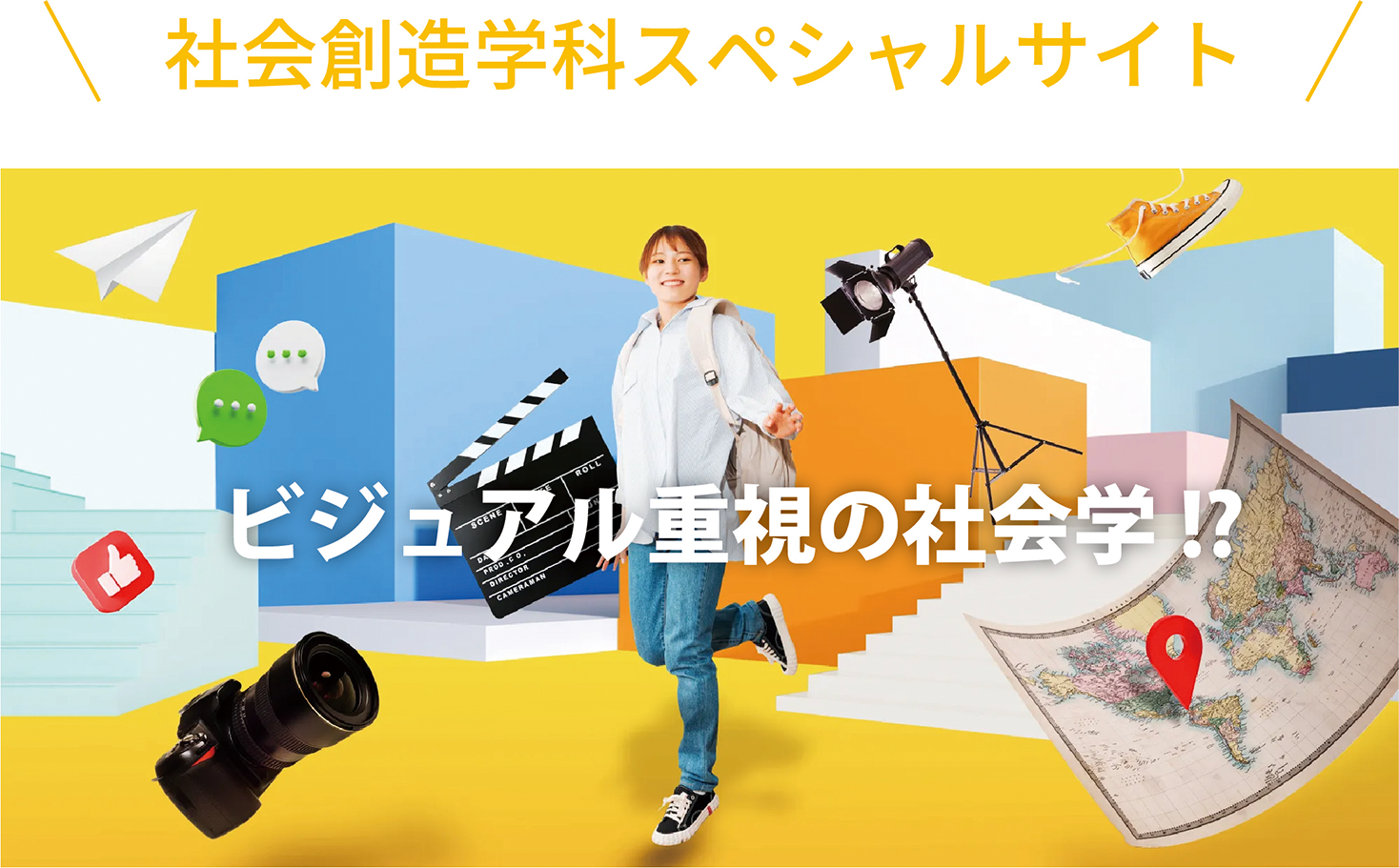 [主な授業例] ●社会創造学概論 ●社会学概論Ⅰ ●フィールドワーク論 ●写真・映像制作基礎 ●コンピュータ技術Ⅰ など
