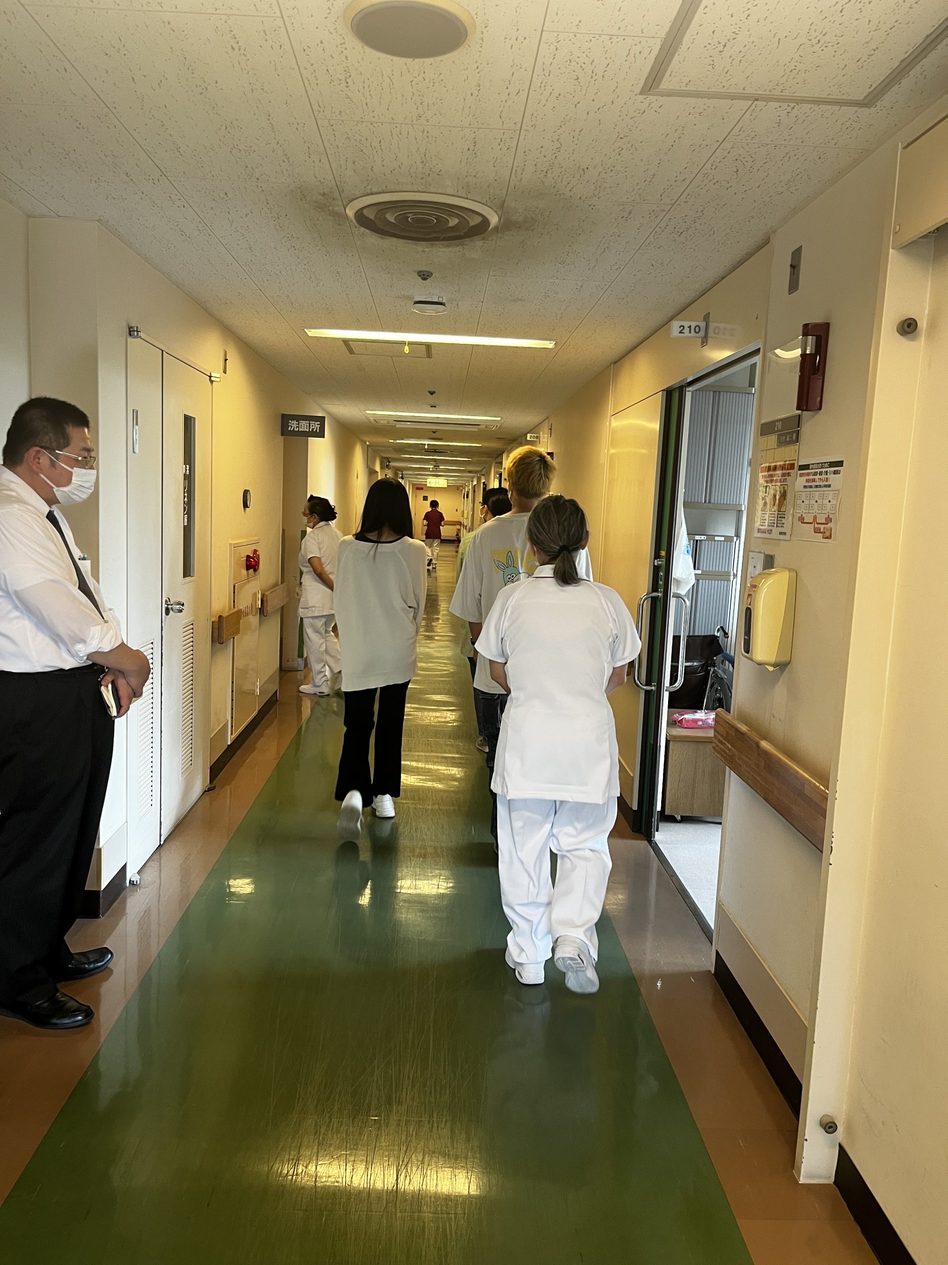 今回は、リハビリテーション科長、事務長、看護部長、副部長の方々が丁寧にご案内とご説明をしてくださいました。施設の概要だけでなく、日々の支援の工夫や職員様の思いについてもお話しいただき、学生たちにとって大変貴重な学びの機会となりました。