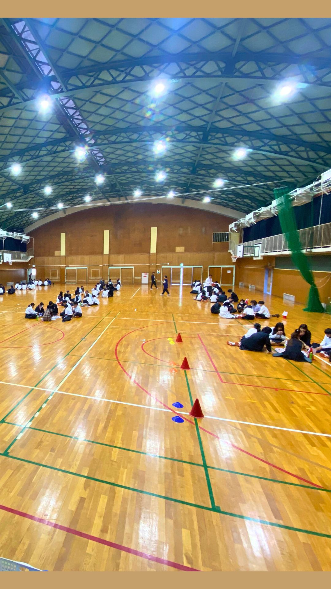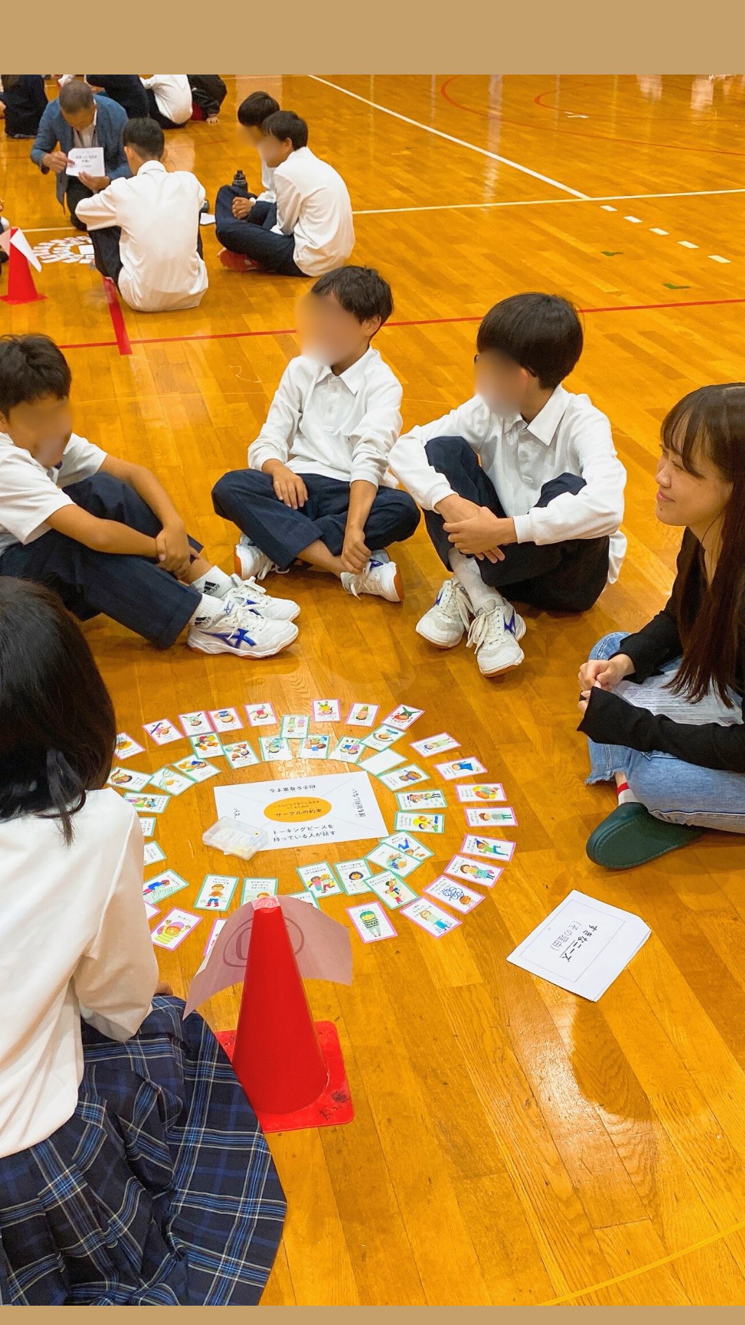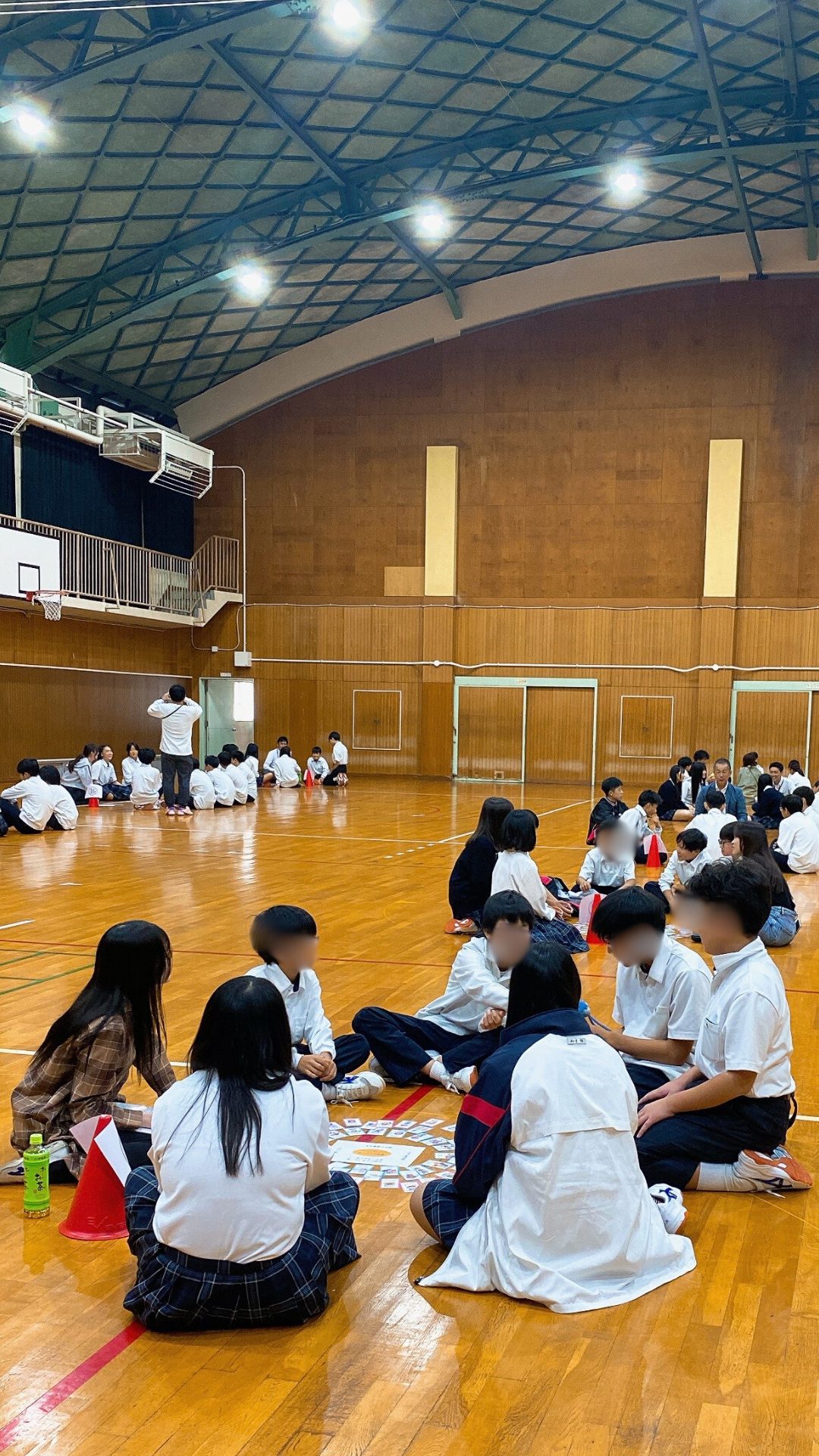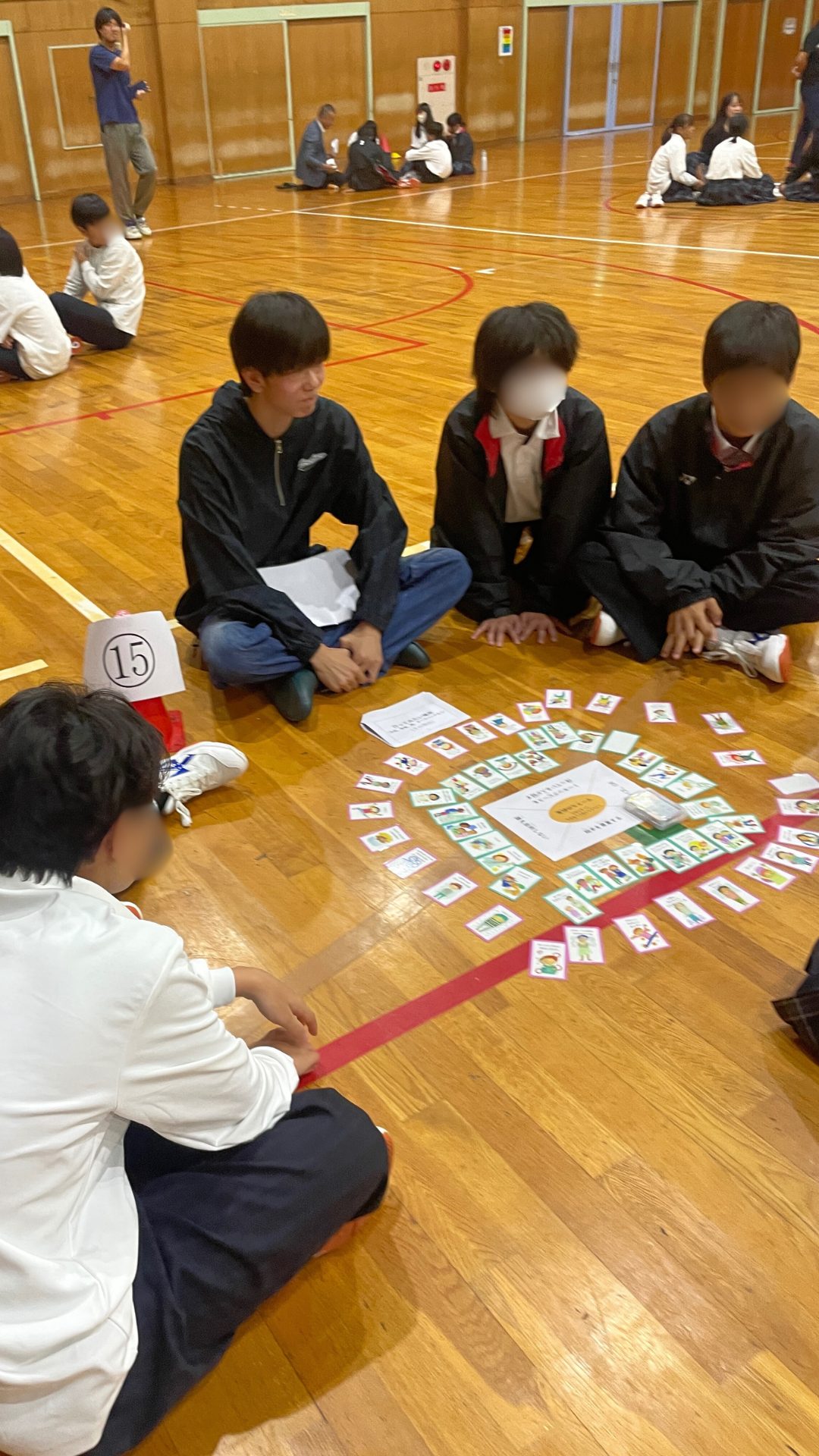 今回は1学年全員の計17サークルで行われるということで、体育館いっぱいに生徒たちのサークルが作られており、大学生もそれぞれのサークルに入ってサークルキーパーの役目を務めました。