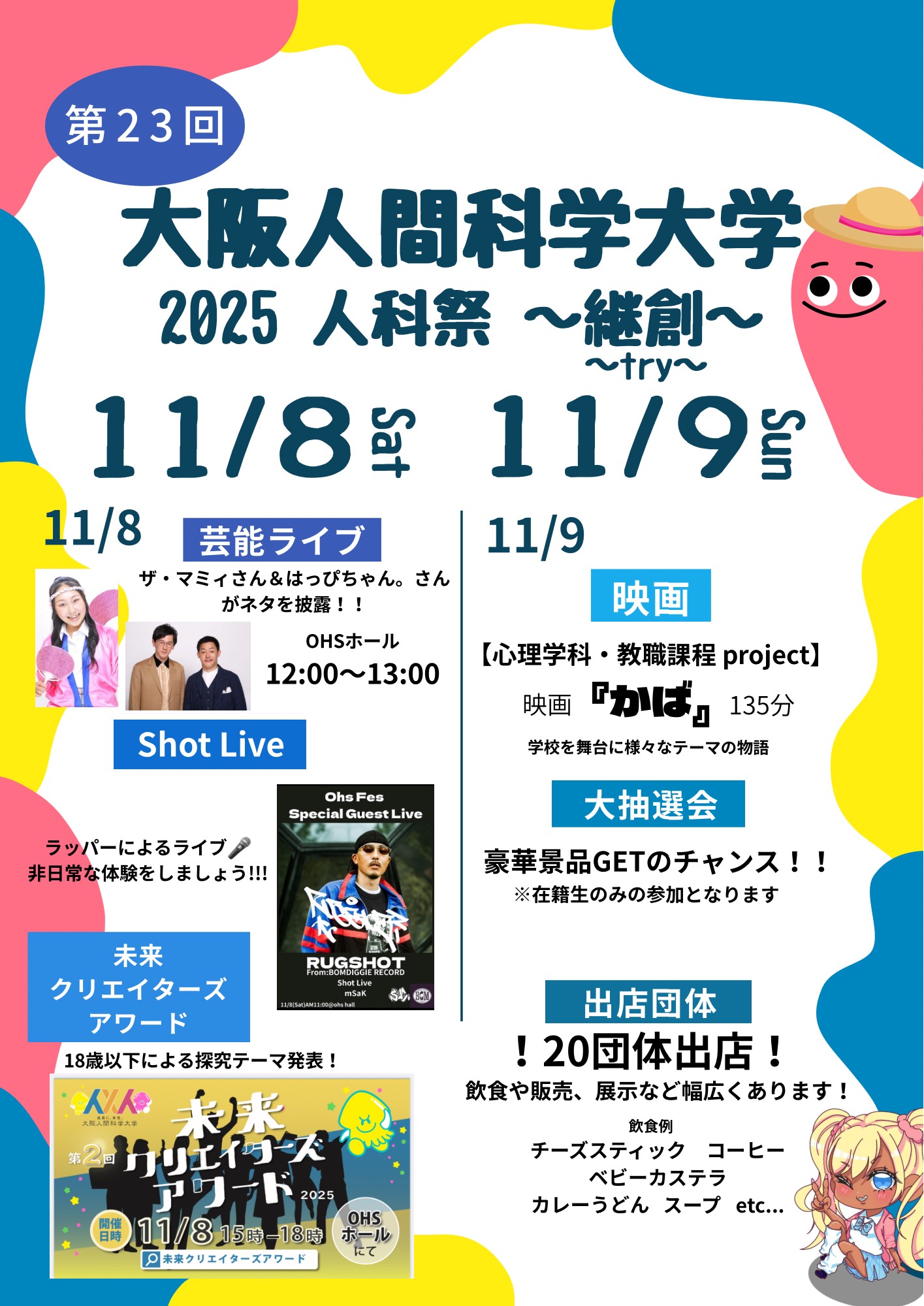 令和7年度大学祭「第23回人科祭」のご案内です!