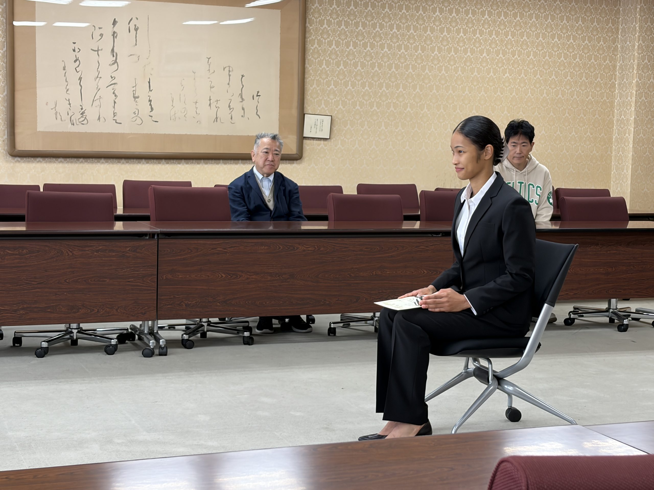 今回の学生表彰は、第74回西日本学生バスケットボール選手権大会で得点王に輝いたディクソン・ミッシェルさん(心理学科3年次)に贈られました。