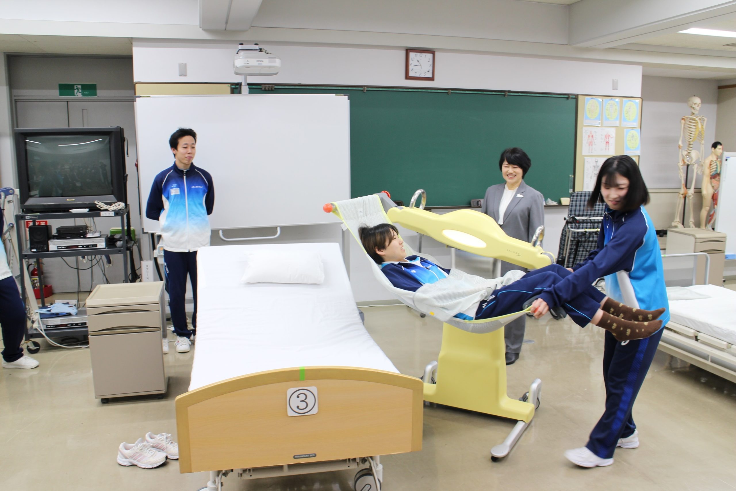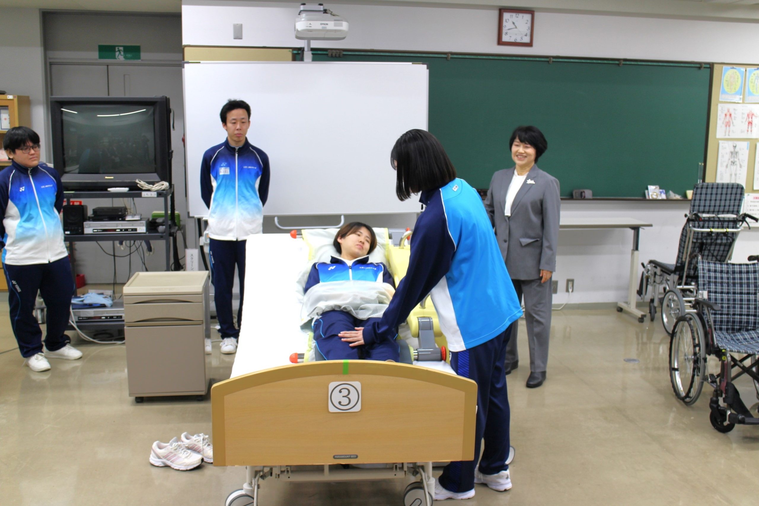 第2部の機器操作説明会では、本学社会福祉学科の学生も参加し、今回のご寄附で購入させていただいた介護ロボットの開発・販売を行っておられるマッスル株式会社のご担当者様から、操作説明が行われました。