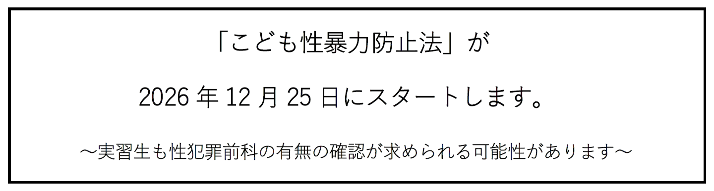 ・性犯罪前科があると確認された者は、こどもと接する実習はできないこととなります。