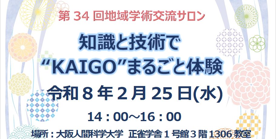 大阪人間科学大学 第34回 地域学術交流サロン募集要項 「知識と技術で“KAIGO”まるごと体験」