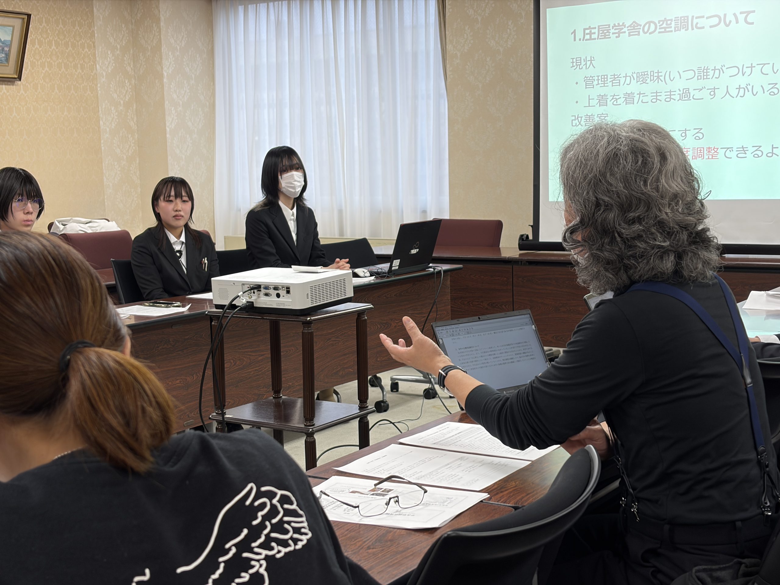 まず学友会から、今年度の活動報告と併せて学生生活アンケートに基づく大学への要望が提示されました。