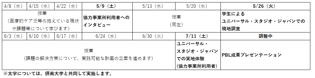 大阪人間科学大学は、「誰もが楽しみをあきらめなくていい社会」を目指す取り組みとして、ユニバーサル・スタジオ・ジャパンと大阪府が連携して実施する公民連携プロジェクトに協力し、社会的に課題を有する方々の「楽しみ」を深化させていくことを目的とした、課題解決型学習(PBL)を摂南大学とともに実施します。