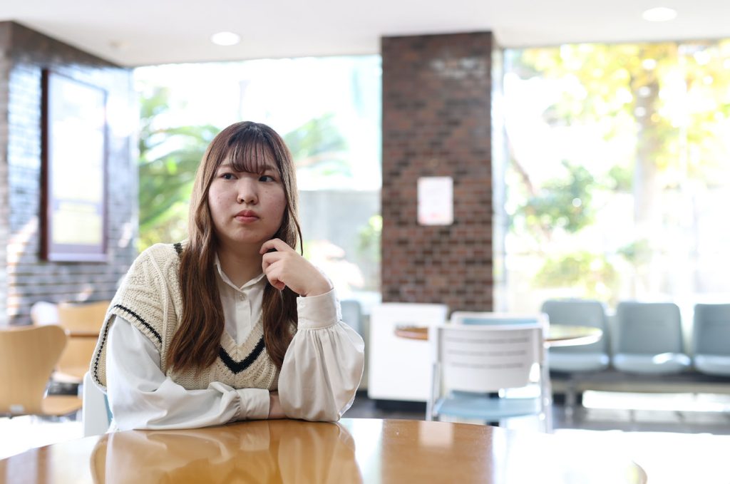 以前は人とかかわることに消極的でしたが、1年次からのフィールドワークで考えが変わりました。たとえば地域のコミュニティに参加する機会を得ても、ただ話を聞いているだけでは私は「お客さん」のまま。学生という立場で意見を発信して初めて、輪に入れるのだと実感しました。また、商店街の広報ツール制作のために自ら店舗へ交渉に回った経験も、「自分から動かないと何も始まらない」という主体性をはぐくむきっかけに。こうした本学科ならではの経験を通じて、積極性が身に付いていると感じます。